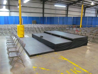 The versatility of our staging allow us to provide our clients with a wide variety of stage applications. We can build everything from a small platform riser to dedicate a building site, to a custom runway for a fashion show. The possibilities are endless. In the photos below, you will find just a few examples of the types of things we can do.